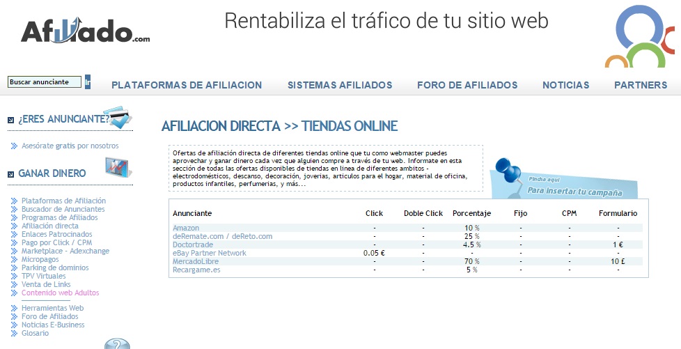 - Contratar este servicio a terceros. Existen intermediarios entre afiliados y anunciantes que garantizan el cobro y la fiabilidad de las mediciones al afiliado y un extenso catálogo segmentado, según las necesidades y objetivos del anunciante.